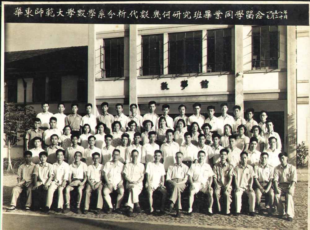 毕业照: 当时的教师第一排左第4人起是曹锡华, 程其襄, 钱端壮, 孙泽瀛, 刘维南, 李锐夫, 雷垣, 张奠宙, 应天翔
