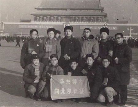 1966年10月31日,华东师大数学系11位青年教师学习红军精神,组成“向北京长征队”从华东师大出发,步行去北京;2013年10月31日,当年战友重聚华东师大,重温47年前的风发意气。