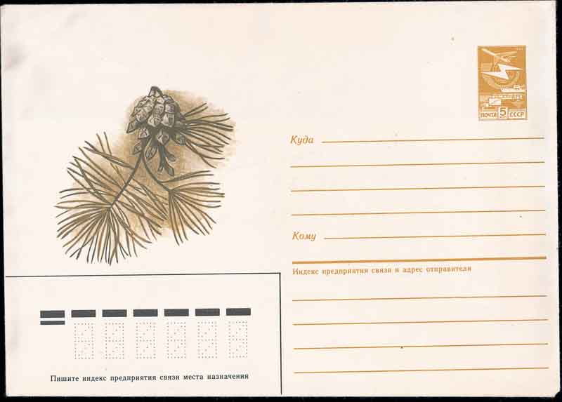 斐波那契数列并不只是数学家们的臆造, 已经发现很多自然现象符合斐波那契数规律. 特别在植物世界中, 几乎所有花卉的花瓣基数是斐波那契数. 如菊花是2基数; 兰花和鹤望兰都是3基数; 梅花、凤凰木和扶桑等是5基数. 我们都知道松树的针叶数, 只有两针松(图4, 前苏联邮资信封), 三针松(图5, 马拉维邮票)和五针松(图6, 保加利亚邮票), 没有四针松. 观察向日葵的花盘, 可发现其种子排列是正反两个方向相嵌在一起的螺旋线(图7), 而螺旋线的数目, 一般是34和55、55和89或89和144, 这每组数字都是斐波那契数列中相邻的两个数. 此外, 在植物的叶子、枝条、果实、种子等形态特征上都可发现斐波那契数的存在. 上述图1、3、7是澳门《黄金比例》这一套邮票中的3枚邮票.