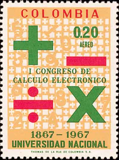 四则运算是数学的最基础的运算法则, 从小学一年级就开始学习. 下面介绍几枚出现在邮票上的加减乘除运算式子(图3-图8).
