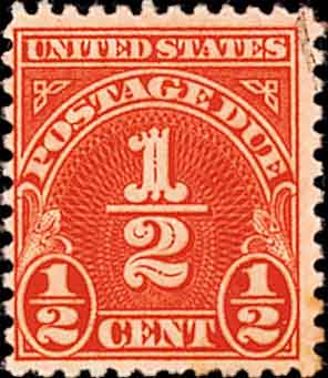 在我国、印度和阿拉伯等古文化比较发达的地区, 在数千年前就已经有了分数的概念. 但分数线的出现是阿拉伯人在12世纪后期所创造, 到13世纪初才由意大利数学家斐波那契(约1170-约1240)介绍到欧洲来. 但现在所用的“分数(fraction)”一词是200多年前, 瑞士数学家欧拉(本刊2007年第8期), 在《通用算术》一书中所首先使用. 下面是分数出现在邮资值上的两个例子, 图1(美国1930年欠资邮票)和图2(英国邮资机戳).