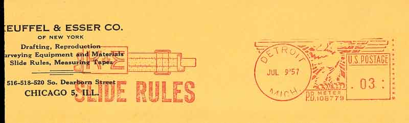 3. 在1614年苏格兰人纳皮尔(John Napier, 1500-1617)发明了对数以后, 使乘除可以转化为加减来运算. 由此而设计出来的对数计算尺(约在1630年)是计算工具的一个大发明. 而把游标安在尺上的那种现代使用的计算尺(图6、图7), 则是1850年法国人曼海姆(Mannheim, 1831-1906)所创造.
