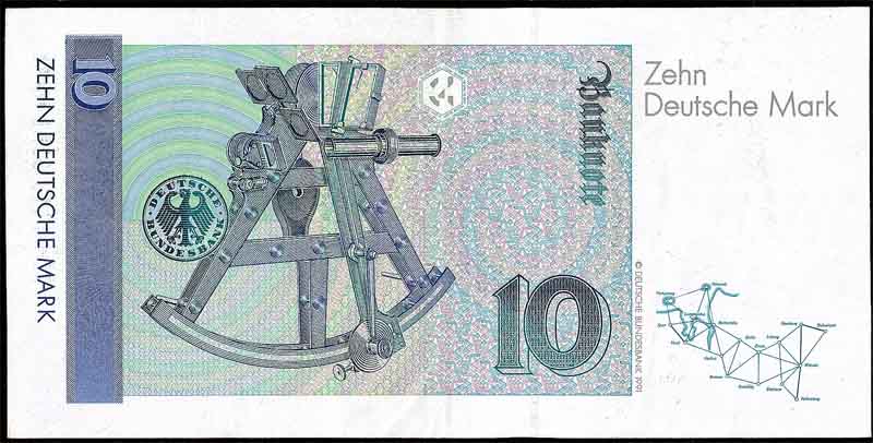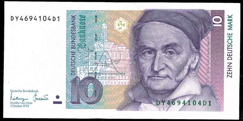 正由于高斯在科学方面的诸多贡献,德国于1991年发行高斯肖像的10(德国)马克的纸币,以资纪念(图4为德国纸币)。