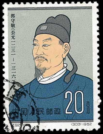 元朝天文学家、数学家郭守敬(1231-1316,图4)在授时历中对天文数据进行重新测定,他改革的天文计算方法可以归纳为两点, 一是全面用内插法三次差计算,即所谓“垛叠招差”。二是引进了球面直角三角形法,即所谓“立浑比量”。 图5左侧是郭守敬研制的天文观察仪器“简仪”。