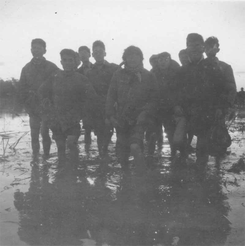 你看:我们走的是芦苇草荡。早上五点半出工,下午四点半收工,寒风凌冽,水冷刺骨,有的地方水深过膝,更何况有的女生还要熬住“例假”的苦楚。 每天同学们就是这样相扶提携淌水往返,记录着我们间深厚的情谊!