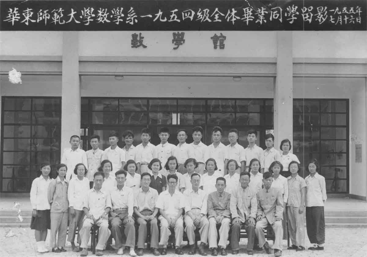 1951年10月16日华东师范大学正式成立。我们是华东师范大学第一批学生,也是数学系第一届学生。当时系里有5位老师,他们是: 施孔成教授,徐春霆副教授和大学刚毕业的三位青年助教(来自交通大学的赖英华,浙江大学的郭仿柏和山东大学的刘景德)。