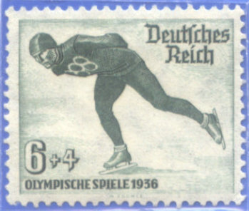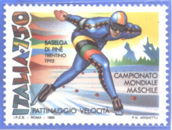 下面罗列一些国家发行的速度滑冰比赛画面的邮票(图13-15分别来自1936年德国,1964年苏联,1995年意大利)。