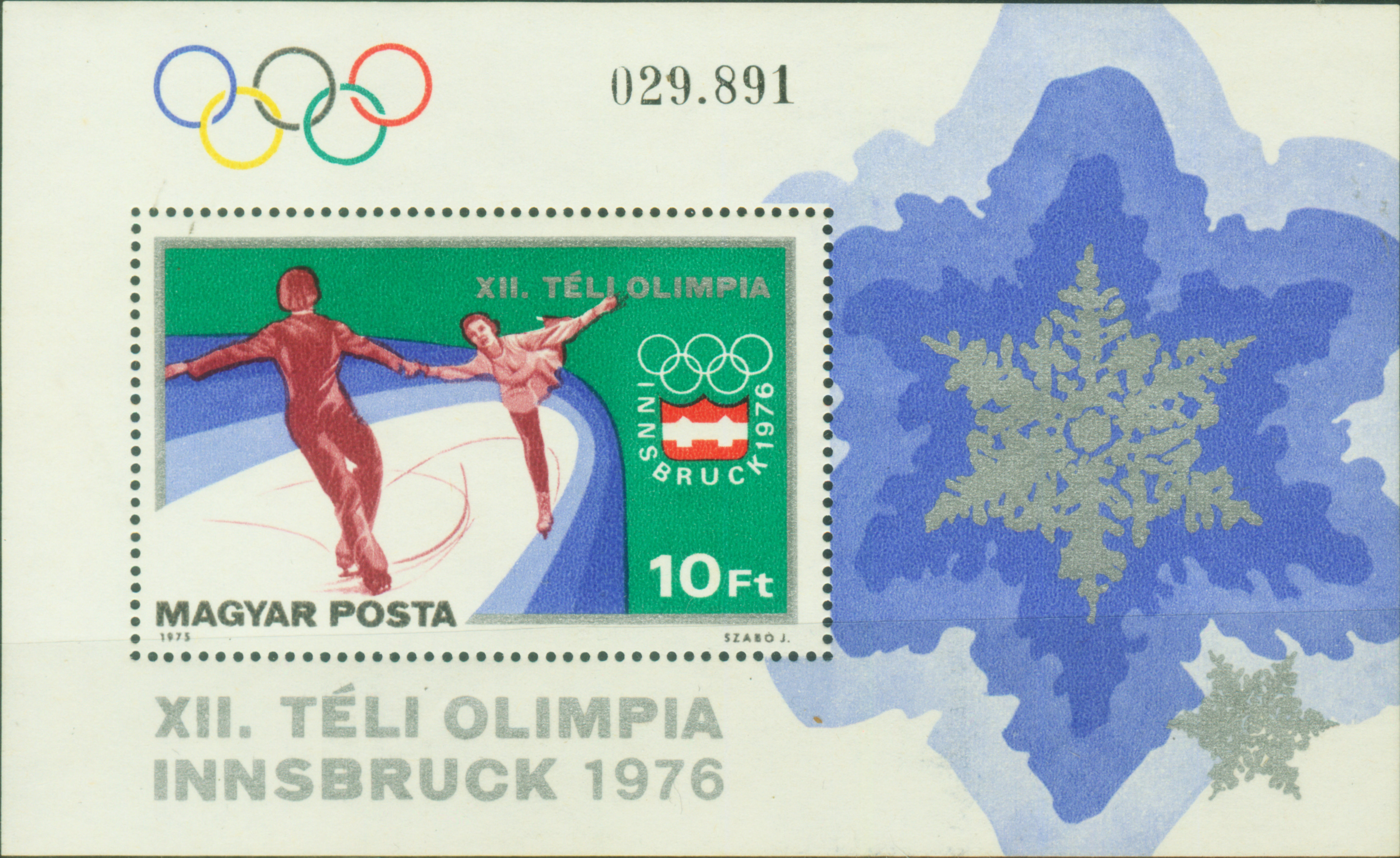 苏联的伊·罗德尼娜与亚·扎伊采夫在1976年和1980年两届冬奥会上均获得男女双人滑金牌。图22是匈牙利于1976年发行的小型张。