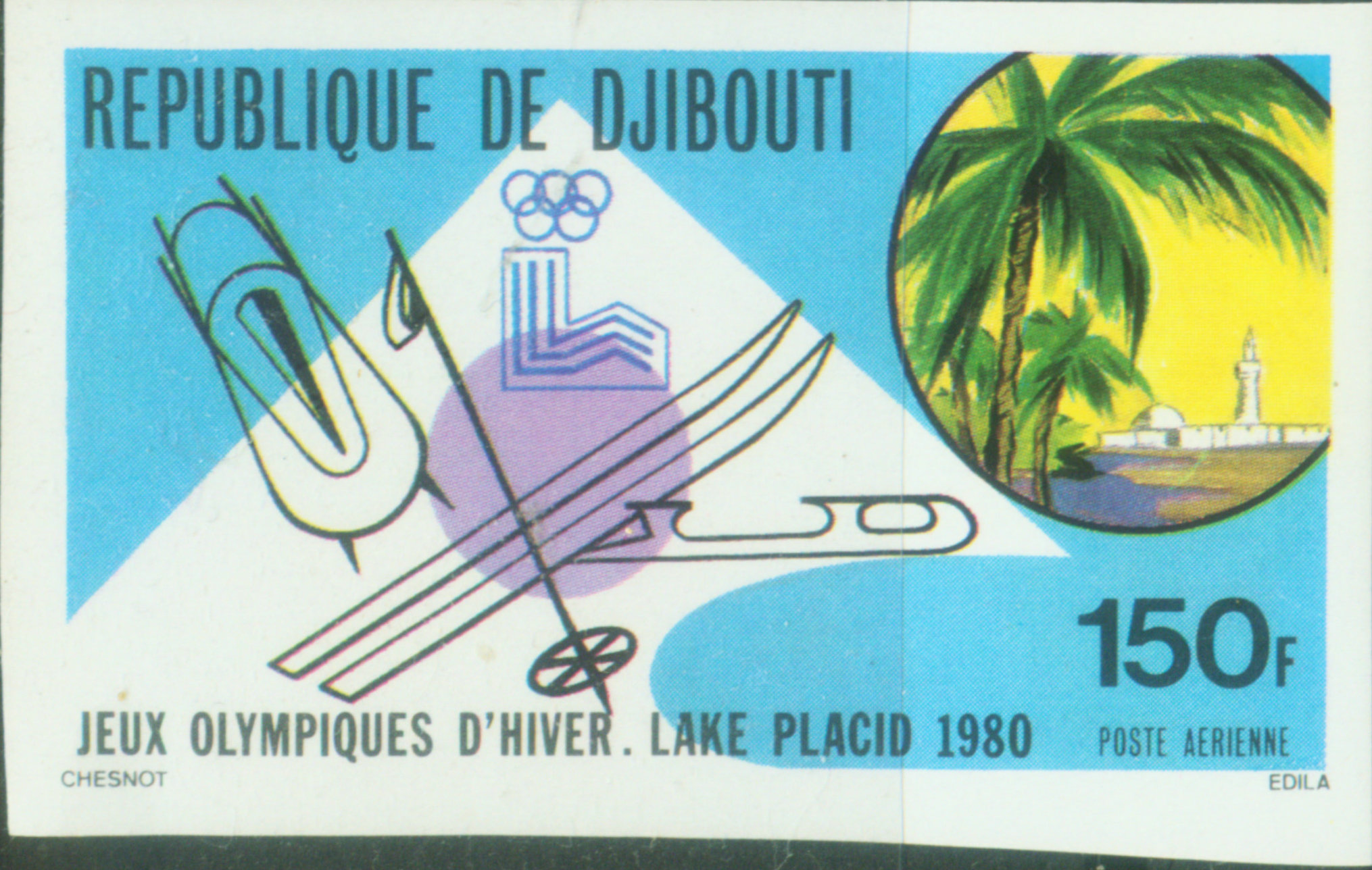第13届冬奥会于1980年在美国普莱西德湖举办,这是该地第二次举办冬奥会。这是我国首次派运动员参加冬季奥运会。为此我国当年发行了一套4枚邮票以资纪念(图10)。