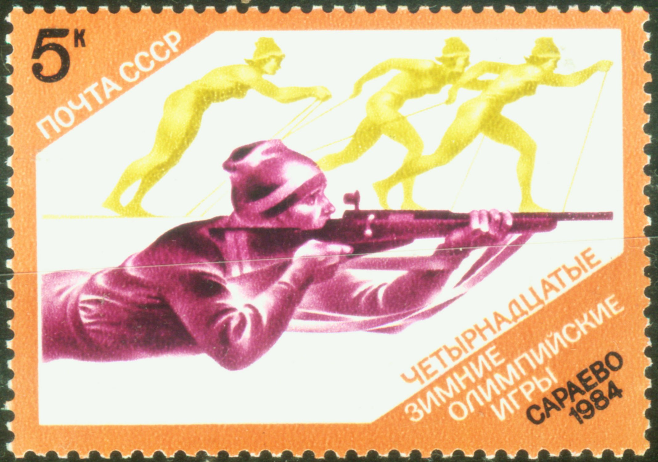 图39-41是奥地利和苏联分别在1964年,1984年和1988年为冬奥会发行的冬季两项邮票。